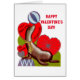 Een zegel balanceert een bal in deze reproductie van de valentijn. Op de achterkant van de kaart staat een kast op een valentijn.