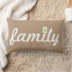 Tan met witte "familie" typografische kussen met een boomaccent boven de "i".