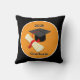 Goud en zwart afstuderen kussen met aanpasbare foto's en tekst. Ballonnen, pet en diploma. Klasse van 2025!