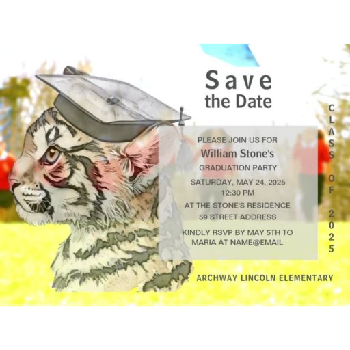 Afstuderen stof met een moderne tijger met een afstudeerdop. Leuke manier om je afstuderen of afstuderen te vieren. Uniek tijgerontwerp. De stof bevat ook aangepaste tekst. Verander de tekst naar uw gelegenheid. Gebruik de sjabloon om je eigen afstuderen tijgerstof te creëer.