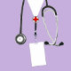 Gepersonaliseerde verpleegkundige afstuderen kaart ontwerp met lavendel ziekenhuis scrubs voor verpleegschool afstudeerder. Bewerk tekst om een naam toe te voegen.