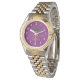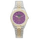Een horloge met een chic design met een illustratie van een afstudeercap en diploma, met Class of 2018 (je kunt het jaar aanpassen) en de naam van de afgestudeerde hieronder geschreven. Set op een paarse achtergrond met goudkleurige belettering. Eenvoudig, modern en elegant.