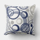 Een verscheidenheid aan blauwe en grijze cirkels combineren om een interessant en aantrekkelijk ontwerp op deze kussen te maken. De cirkelvormige afbeeldingen worden op een witte achtergrond geplaatst. Het patroon wordt herhaald op de rug van de kussen. *Bedankt aan het Ontwerp van Milachi op Etsy.com voor het cirkelpatroon dat in dit ontwerp wordt gebruikt.