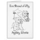 Vertel de wereld hoe je je voelt over die speciale West Highland White Terrier die uitblinkt in Agility! Ik ben trots op mijn behendigheid Westie! Dit ontwerp is creëer van mijn originele pen en inktschetskunst en is beschikbaar op kleding, artikelen voor nieuwheid en cadeautjes!