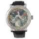 AI geassisteerd Art Deco horloge gezicht ontwerp van de dame met vloeiend haar. Dit is AI gegenereerd en bewerkt in Photoshop, zodat het enkele artefacten zal hebben. Kijk naar de volledige grootte om er zeker van te zijn dat je goed bent met het ontwerp.