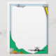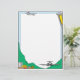 Dit briefhoofd bevat een vliegtuig dat landt op een luchthaven en een ander vliegtuig dat hoge overheadkosten vliegt.