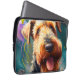 Airedale hond met verjaardagscadeau en pet laptop sleeve