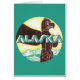 illustratie: bagageetiket van de poster uit Alaska met een autowrak van Alaskan Eskimo met een adelaar.