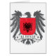 De Albanese vlag op een achtergrond van herbevestigde vleugels.