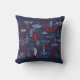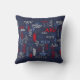 Typografische naam tekst rood, tinten grijs, blauw en wit op een donkerblauwe achtergrond aangepast kussen ontwerp. De achtergrondkleur kan indien nodig worden veranderd. Leuk gepersonaliseerd grafisch tekst kussen kussen kussen. Ideaal voor tiener en kinder. Personaliseer met je eigen naam, leest momenteel Alfie voor hulp bij personalisatie en andere naamlengtes neem dan contact met mij op. © Kunst en design door Sarah Trett voor www.mylittleeden.com