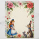 Stap in een grillige wereld met dit prachtige papier met Alice en Konijnen. Het toont een charmante bloemrand van rode rozen en groene bladeren die een centrale ruimte omlijsten, met Alice en het witte konijn onderaan. Met onbeperkte creatieve mogelijkheden is dit papier perfect voor scrapbooking, junk journaling, crafting en andere gepersonaliseerde projecten. Gedrukt in hoogwaardige, full-colour op dun mat papier, is het ontworpen om een scherpe, professionele uitstraling te geven aan uw persoonlijke of zakelijke mailings. Voeg persoonlijke foto's en tekst toe zonder extra kosten, waardoor het een veelzijdige en gedenkwaardige toevoeging aan elk project is.