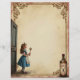 Maak je klaar voor een grillig avontuur met dit prachtige papier met een Alice in Wonderland-scene. Het toont Alice die een gouden sleutel vasthoudt en bij een deur staat, met het iconische 'Drink Me'-flesje in de buurt, allemaal omlijst door een elegante rand. Met onbeperkte creatieve mogelijkheden is dit papier perfect voor uitnodigingen, scrapbooking, junk journaling en andere gepersonaliseerde projecten. Gedrukt in hoogwaardige, full-colour op dun mat papier, is het ontworpen om een scherpe, professionele uitstraling te geven aan uw persoonlijke of zakelijke mailings. Voeg persoonlijke foto's en tekst toe zonder extra kosten, waardoor het een veelzijdige en gedenkwaardige toevoeging aan elk project is.