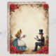 Verdwaal in een charmant literair moment met deze prachtige paper met een Alice in Wonderland-scene. Het toont Alice en de Mad Hatter die een rustig moment delen, beide verdiept in boeken, omlijst door een prachtige rand van rode rozen. Met onbeperkte creatieve mogelijkheden is dit papier perfect voor uitnodigingen, scrapbooking, junk journaling en andere gepersonaliseerde projecten. Gedrukt in hoogwaardige, full-colour op dun mat papier, is het ontworpen om een scherpe, professionele uitstraling te geven aan uw persoonlijke of zakelijke mailings. Voeg persoonlijke foto's en tekst toe zonder extra kosten, waardoor het een veelzijdige en gedenkwaardige toevoeging aan elk project is.