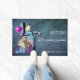donkerblauwe Alice in Wonderland Queen of Hearts Doormat. Ga binnen! Als je het durft. Verhaal je bezoekers met dit grappige en schattige portret. Pas het bericht aan om het uw eigen unieke spin te geven. Contacteer de ontwerper als u grafisch zou willen veranderen.