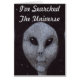 Een kleurenpotloodtekening van drie Alien Grey ET's tegen een sterrenzwarte hemel.