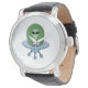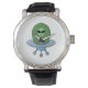 Een schattig buitenaards wezen klaar om de aarde en andere planeten te bezoeken in zijn kleine ruimteschip.