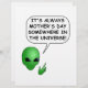 Een cartoon buitenaards hoofdgezegde dat altijd ergens in het universum is moederdag.