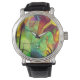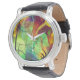 Alien vuren Opal abstract op dit horloge. Alien als uitzicht van geschilderde glasplaten in wervelingen van kleuren die doen denken aan vuur opaal, levendig blauw, groen, geel, rood, sinaasappel en paarse
