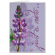 Een kaart met paarse lupine om "een briefje" te sturen.