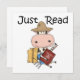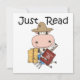 Lees gewoon T-shirts, hooien, mokken, kaarten, stickers, knoppen, magneten, muismatten, tijdschriften, keepsakes en andere leesthema's en cadeaus die het lezen op een schattige manier bevorderen! Een koe met een rietje pet en pitchfork rust tegen een hooibuis met een boek!