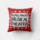 "I'm All About Musical Theatre" is een schattig tekstontwerp in rood met zwarte tekst, samen met een witte accentvorm en witte gestructureerde grillige stippen eromheen.