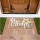 Aloha mooie bloem op de burlap Hawaii zomerdoormat voor haar.