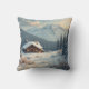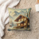 Alpine-geïnspireerde winterscène met een gezellig chalet omgeven door besneeuwde bomen en majestueuze bergen. Perfect voor rustieke inrichting, seizoensgebonden kunst en vakantie-inspiratie!