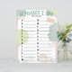 Hoe te spelen: Een eenvoudige manier om te spelen is om te beginnen met de letter A. Schrijf iets op dat gerelateerd is aan de dierentuin en dat je kunt zien beginnen met die letter. Dit kan een plaats, persoon of een object zijn. Bijvoorbeeld, A- Alligator, B- Bison, C- Camel, en ga door elke letter! Als je meerdere spelers hebt, kun je om de beurt een item vinden en de andere spelers laten raden voordat je opschrijft wat je hebt bespioneerd. Een andere manier om te spelen: 1. Schrijf afzonderlijke lijsten van de dingen die je ziet te beginnen met de letters van het Alfabet 2. Vergelijk lijsten wanneer alle spelers een antwoord hebben geschreven voor alle 26 letters. 3. Kruis dezelfde items af die worden bespioneerd als andere spelers. Wie de meeste antwoorden heeft die niet worden doorgestreept, wint. Tip: Scratch Paper Games favoriete manier om te spelen is om naar een dierentuin of safaripark te gaan om te spelen!