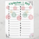 Hoe te spelen: Een gemakkelijke manier om te spelen is om te beginnen met de letter A. Schrijf iets op dat verband houdt met Kerstmis en dat je kunt zien beginnen met die letter. Dit kan een plaats, persoon of een object zijn. Bijvoorbeeld A- Angel, B- Bow, C- Christmas Presents, en ga door elke letter! Als je meerdere spelers hebt, kun je om de beurt een item vinden en de andere spelers laten raden voordat je opschrijft wat je hebt bespioneerd. Een andere manier om te spelen: 1. Schrijf afzonderlijke lijsten van de dingen die je ziet te beginnen met de letters van het Alfabet 2. Vergelijk lijsten wanneer alle spelers een antwoord hebben geschreven voor alle 26 letters. 3. Kruis dezelfde items af die worden bespioneerd als andere spelers. Wie de meeste antwoorden heeft die niet worden doorgestreept, wint.
