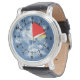 Geen echte hoogtemeter, de handen bewegen met de wijzers van de klok mee, maar de gevarenzone tussen de uren van middernacht en 3 AM wordt benadrukt in geel en rood voor de nachtuil. Het rendabele klokgezicht van de hoogtemeter keek over een blauwe achtergrond aan de hemel met wolken, gekalibreerd voor 12.000 voet vrije herfst voor skydivers.