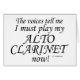 De stemmen zeggen me dat ik mijn Alto Clarinet moet spelen. Heb je stemmen in je hoofd die je vertellen dat je je instrument moet oefenen of dat je moet optreden? De stemmen kunnen afkomstig zijn van je leraar of directeur, of van jezelf, die je vertellen dat je moet oefenen om al je talent te laten zien.