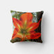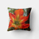 Dit Worpdek Kussen toont de intense schoonheid van een bloem, een Amaryllis die bloeit in de tuin. De originele foto van ZoeSPEAK is een close-up, en de details van de bloem, de vormen en kleurveranderingen van het centrum naar buiten zijn verbazingwekkend. Van zachte tinten groen die overgaan in geel, eindigt de bloem met vijf uitgestrekte bloembladen in diep, rijk oranje tegen een achtergrond van groene bladeren en gedempt bruin hout.
