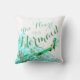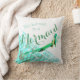 Aangepaste omkeerbare Amerikaanse MoJo-Kussens. Zeemeermin met vleugels van het Vluchtje en kleurenfilters gepersonaliseerde doopvonten, woorden, namen, kleuren en grootte, voor en achter. De staartschalen van Hombre in turquoise met filteropties.
