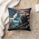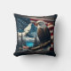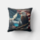 Een majestueuze adelaar ligt op een tak, tegen een achtergrond van bergen en de Amerikaanse vlag, die kracht en vrijheid symboliseert.