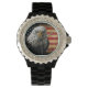 Amerikaanse Bald Eagle over de vlag van Grunge Horloge