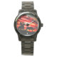 Heel patriottisch en Amerikaans, dit horloge heeft een steer roping cowboy met een enorme Amerikaanse vlag op de achtergrond. Maakt een verklaring af.