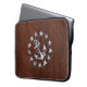 Een Amerikaanse jachtvlag nautisch zilver chroomkleurige applicatie op een natte mahoniehoutnerf structuur decor. Een klasse, op maat gemaakte nautische stijl cadeau voor jezelf of voor iemand speciaal, op of naast de boot.