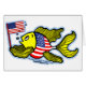 Amerikaanse vlag, Sparky de vis houdt vast en Amerikaanse vlag viert op 4 juli