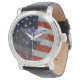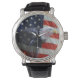 Dit patriottische horloge heeft foto van de sterren en strepen van de Amerikaanse vlag gemengd met een Amerikaanse adelaar. Brede selectie van stijlen en kleuren beschikbaar.