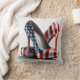 Hoge hakken schoenen met een ontwerp geïnspireerd op de Amerikaanse vlag zijn geplaatst tegen een effen achtergrond