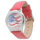 Helder kleurrijk zwaaien in de wind Amerikaanse vlag met cijfers om de tijd te vertellen. Amerikaanse vlag in rood witte en blauwe sterren en strepen voor een verse Patriottische Americana of 4 juli cadeau.