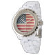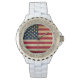 Onze American Flag Rhinestone Accent White Emaille Watch is een cool cadeau-idee voor alle gelegenheden! Mod geïnspireerd ontwerp toont de iconische vlag van de Verenigde Staten van Amerika, opgetrokken in een moderne grunge stijl. Verkrijgbaar in verschillende horlogestijlen. Geef het of krijg er een voor jezelf!