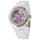 Vrouwen neushoorn-wit enamel horloge met een afbeelding van een duizelingwekkende amethist. Zie de passende knoop, charm, dalingsoorringen, sleutelhangers en ketting. Zie het volledige collectie van het Horloge van de Gemstenen & van de Medallions in de sectie van de ACCESSOIRES.