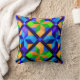 Neem een traditioneel Amish-quiltpatroon, duw de verzadiging en levendigheid van de kleuren tot het maximum en bedek een rooster met wat lijkt op gloeiende koplampen bij de gewrichten en je krijgt een origineel digitaal schilderij van HomeArts dat rechtstreeks op dit kussen is afgedrukt.