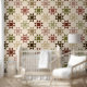 Geef elke kamer een huiselijke uitstraling. Deze peel en stick behang is gemodelleerd om eruit te zien als een Amish quilt met een Ohio Star quilt blokprint in tinten van groen, bordeaux en mauve tegen een crèmekleurige achtergrond.