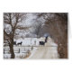 Verkoop van Amish buggies op een met sneeuw bedekte weg.