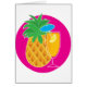 Een ananas met een groene bovenkant, bevindt zich op een cyaan achtergrond. Op de voorgrond is er een ananascocktail in een gestampt glas met een citroenwig en een kleine blauwe paraplu.
