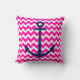 Een blauw marineslot op een hete roze en witte chevron achtergrond.
