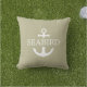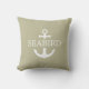 Nautical Anchor Pillow White Nautical Anchor met Custom Boat Name op Solid Grey Olive Green background. Moderne anker logo gecombineerd met klassieke Serif Font Boat Name sjabloon. Deze Khaki-nautische kussens is een geweldig decoratief idee voor elegante buitenzitplaatsen en een prachtig cadeauidee voor haar en hem, boaters en zeelieden. Patio heeft decoratieve ideeën gemaakt van oceaanliefde. #ybeedesign #ybeesea #ankerpillowsnautical #boatpillows #olivegreenpillow #khakipillow © Design y.BEE ZEE