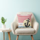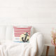Deze kussen zijn voorzien van een afbeelding van een anker met een touw, een gele en witte gestreepte zon en verschillende lijnen blauwe watergolven op een rode en witte gestreepte achtergrond. De tekst staat voor verpersoonlijking toe. Dit kussen is een perfect accent voor elk meer- of strandhuis.